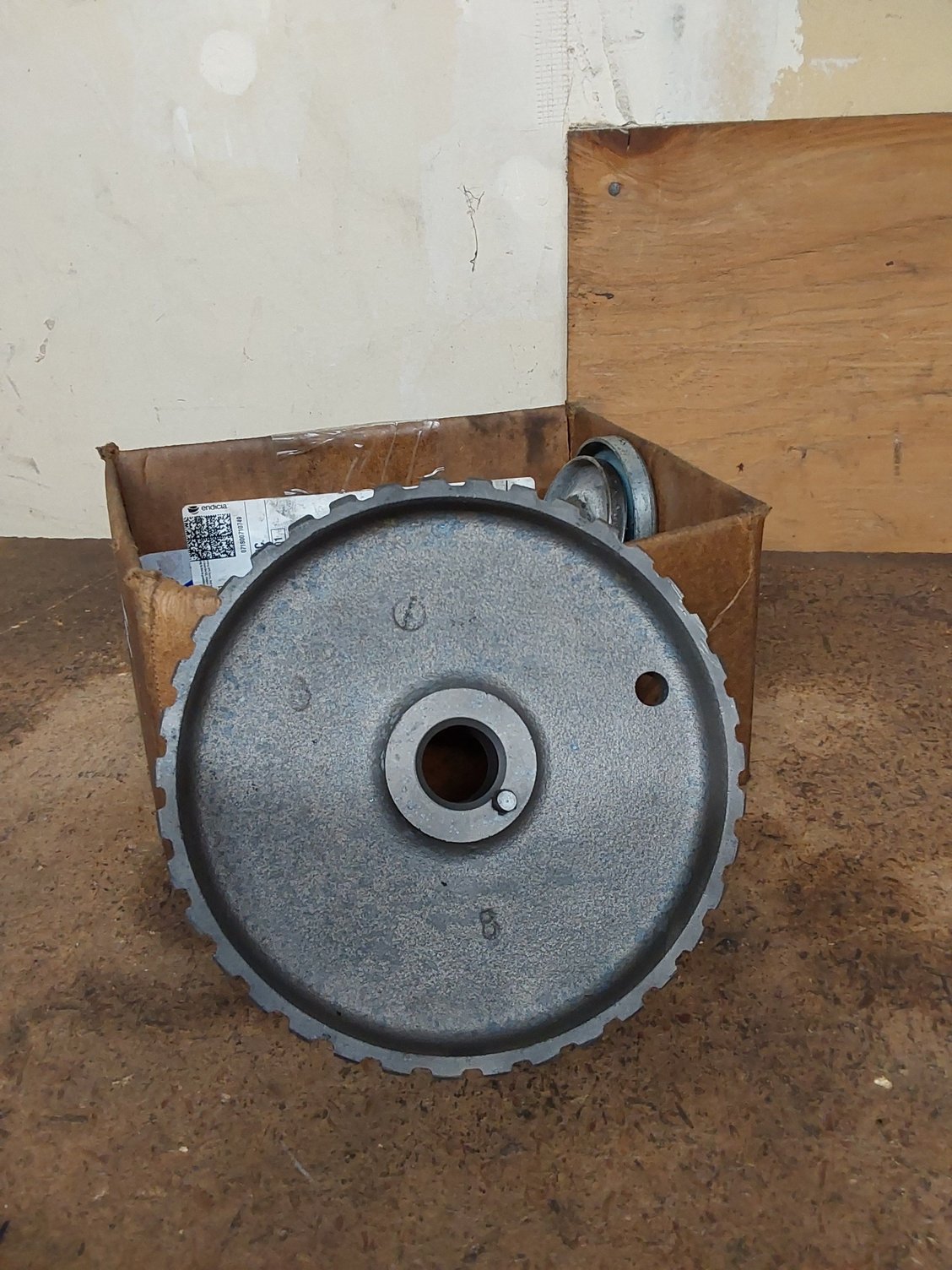 Oil pan, Cam gear, and box of used followers and lash adjusters.