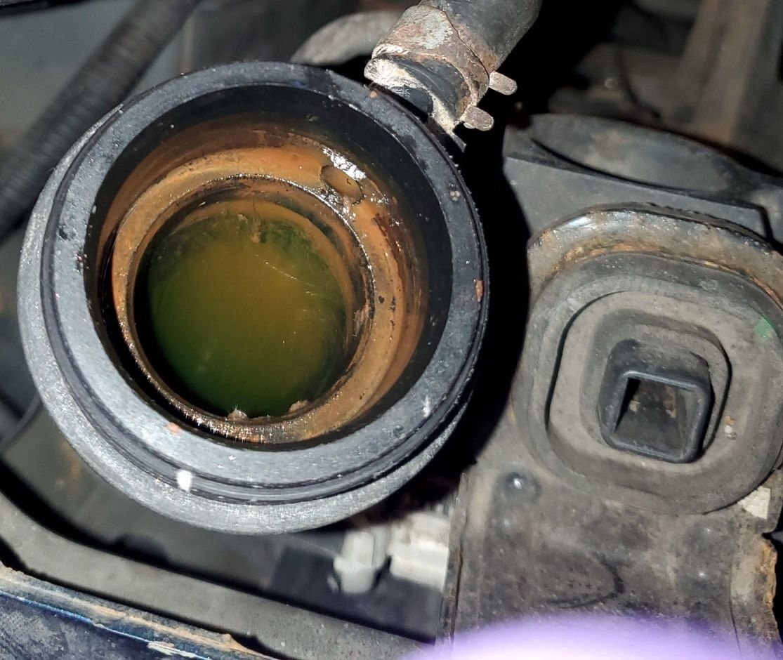 Went to go look at a car to buy and I was put off by the residue of Dexcool sludge in the radiator. I stopped the inspection right there, but am I being too quick to condemn? I mean, it's not caked all over, but I'm imagining how small those passageways are in the heater core and I don't want to be replacing that. I'm also wondering if this is indicates enough to cause hot spots in the engine block, etc. There's green coolant in there now. owner says he flushed out all the dex and replace with green when he did the water pump 10k miles ago. Please see picture: