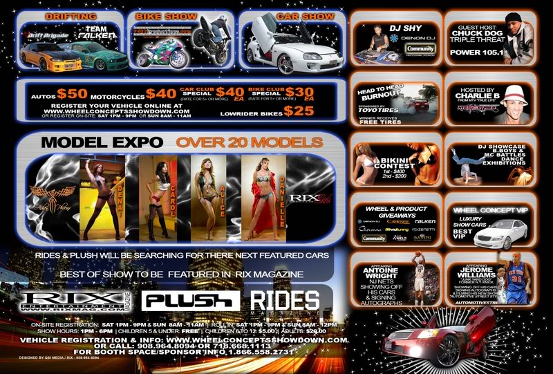 Attachment 228 Definitely don't want to miss this show. Show is going to be indoor and outdoor with lots of activities going on throughout the day. There will be a burnout contest, a bike stunt team, and head to head drift showoff between Team Falken and Drift Brigade. And Much Much More. For more Information and to register visit www.wheelconceptsshowdown.com and www.RixMag.com |